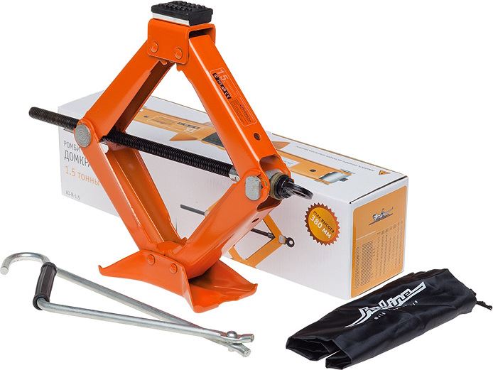 Комплектация: 1. Домкрат — 1 шт. 2. Рукоятка — 1 шт. 3. Сумка — 1шт. 4. Паспорт изделия — 1 шт. 5. Гарантийный талон — 1 шт. 6. Коробка — 1 шт.
