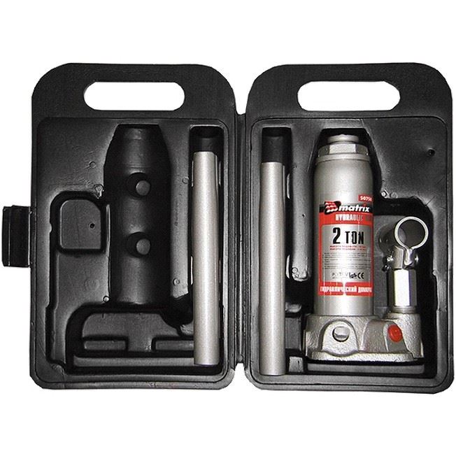 Гидравлический бутылочный домкрат Matrix 50750 поднимает грузы массой до 2 т на высоту от 181 до 345 мм. Оптимален для машин с большим клиренсом. Будет полезен автолюбителям при проведении технического обслуживания и ремонте авто в дороге или в гараже. Также домкрат подходит для полупрофессионального применения на станциях ТО.