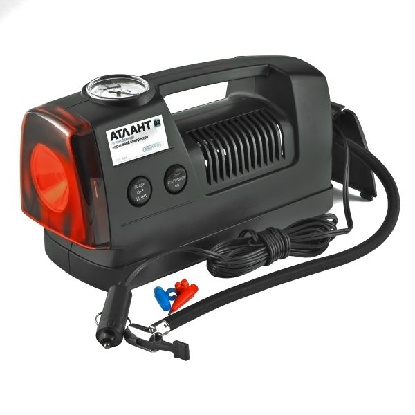 Компрессор АТЛАНТ-02 изготовлен из пластмассы — ABC с ярким светодиодным фонарем.