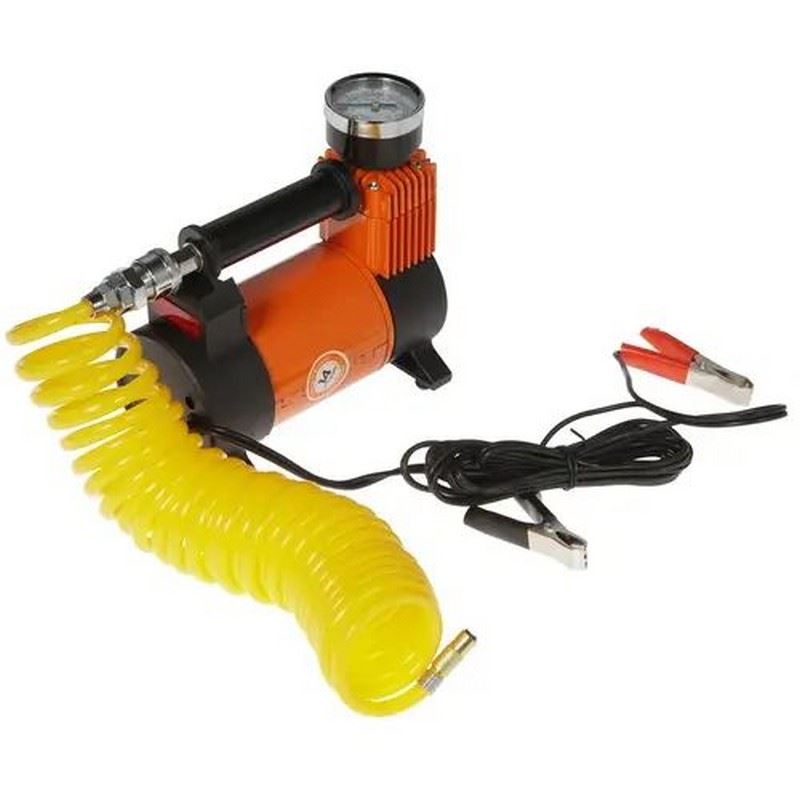 С его помощью вы сможете контролировать давление в накачиваемой автомобильной шине. Компактные габариты устройства и малый вес, равный 1.9 кг, позволит удобно разместить его в самом миниатюрном багажнике, а предусмотренная в комплекте поставки сумка обеспечит безопасность хранения для компрессора и набора переходных штуцеров. Модель подключается напрямую к автомобильному аккумулятору с напряжением 12 В при помощи клемм.