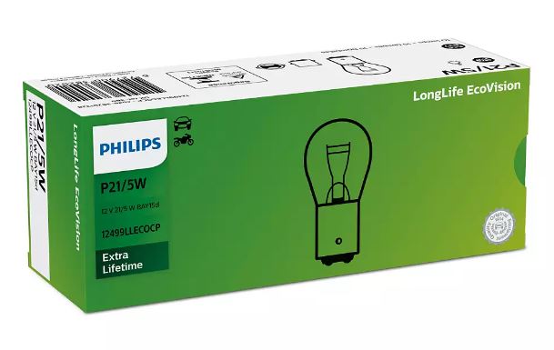 Лампа P21/5W LongLife EcoVision 12V 21/5W BAY15d CP Philips 12499LLECOCP