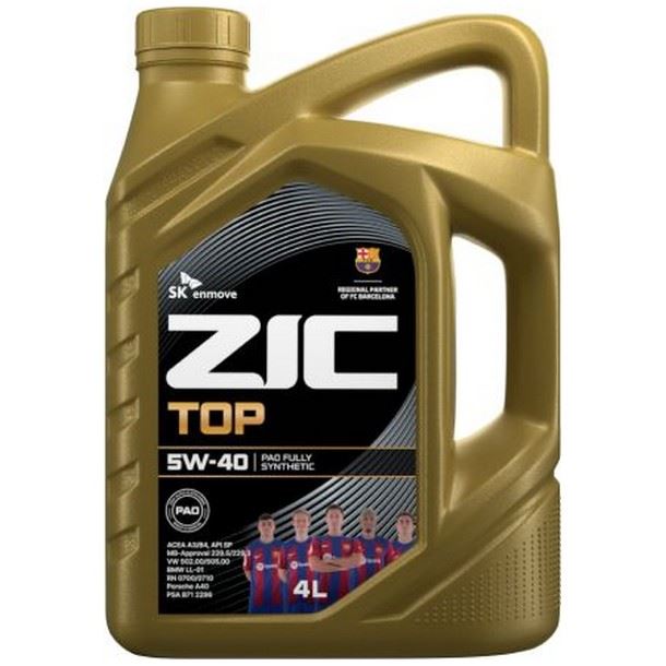 Масло моторное ZIC TOP Полностью синтетическое моторное масло для бензиновых и дизельных двигателей современных легковых автомобилей. Изготовлено на основе полиальфаолефинов (ПАО) и собственного синтетического базового масла Yubase+ в сочетании с современным низкозольным пакетом присадок.